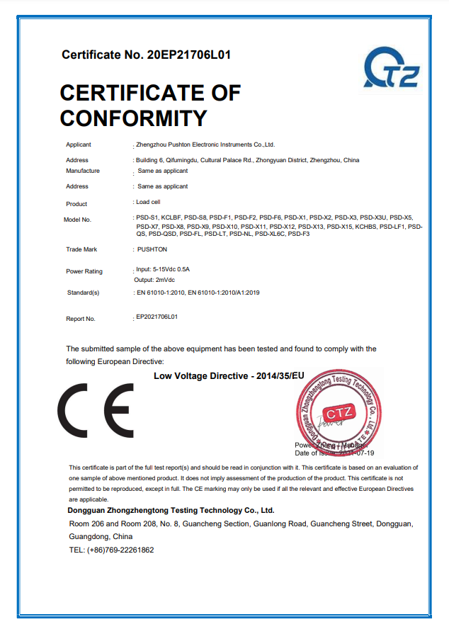 传感器证书No.20EP21706L01